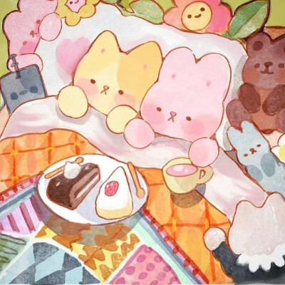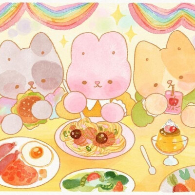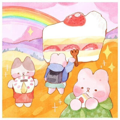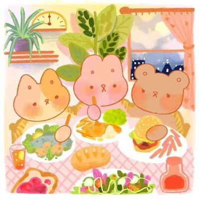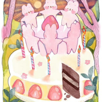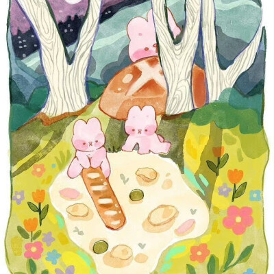 来自于插画师banban.cuties的一组粉色兔子系列作品