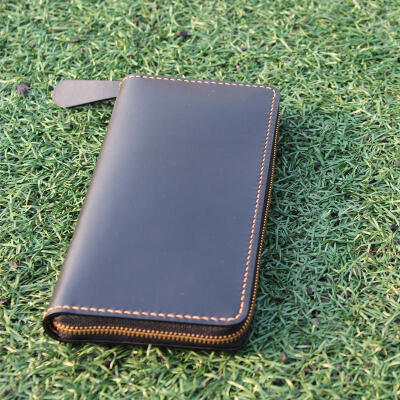 缘字坊手工皮具 小号黑色小牛皮手包长钱包手拿包 头层牛皮钱包