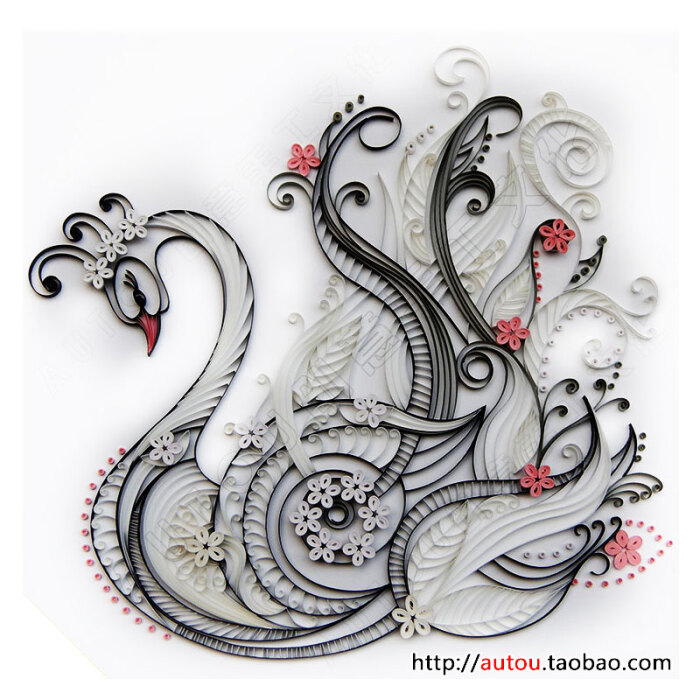 天鹅娜多姿 衍纸线稿图纸 衍纸画材料包 教学底稿图 衍纸底纸图稿