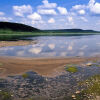 清澈的河水。悠闲的白云。这样的场景,大自然和谐的很好。