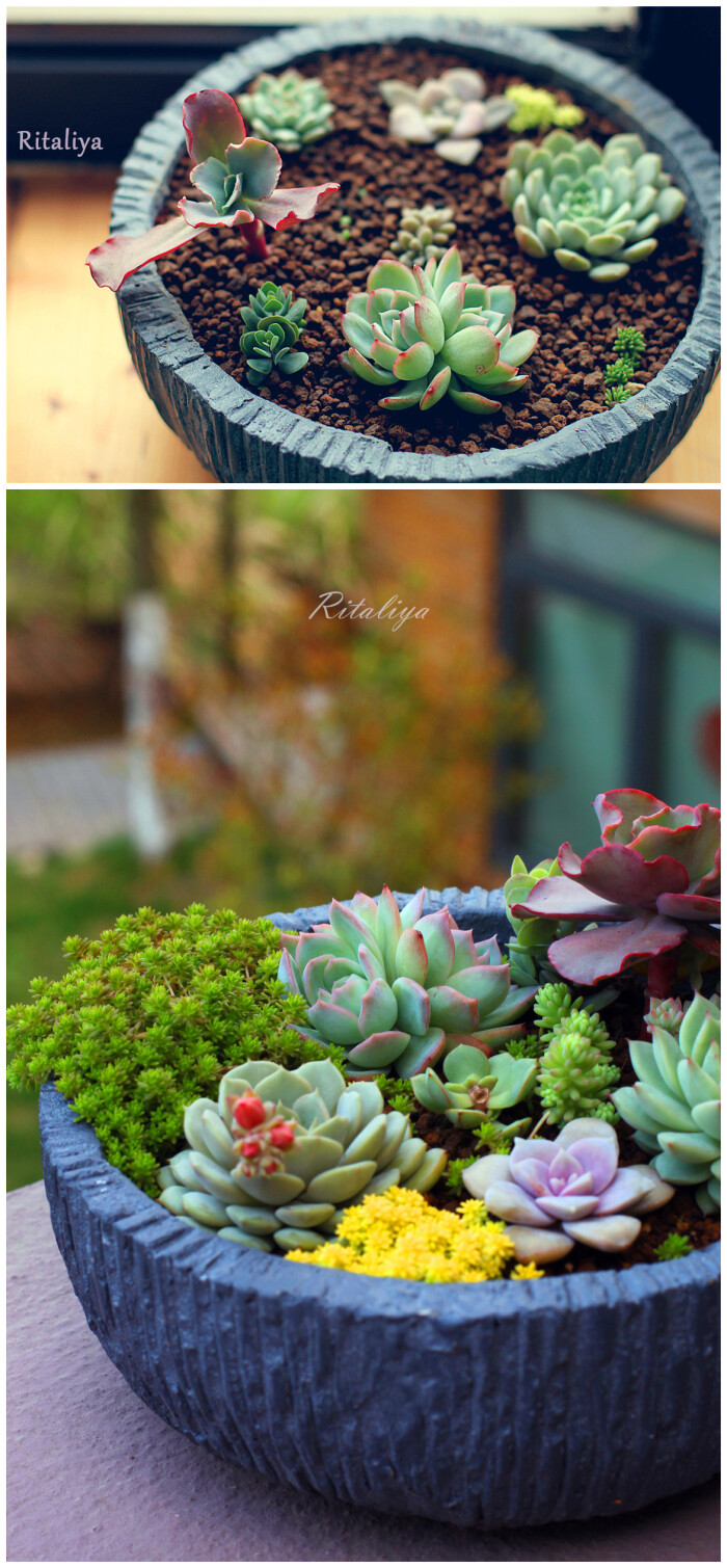 四个月左右的对比图,挤挤更健康~不过在这样多雨的春季,太挤的话会容易烂叶子的呢~\多肉植物\肉肉\\