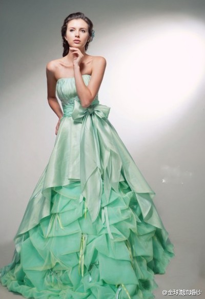 绿色的婚纱,很清新吧