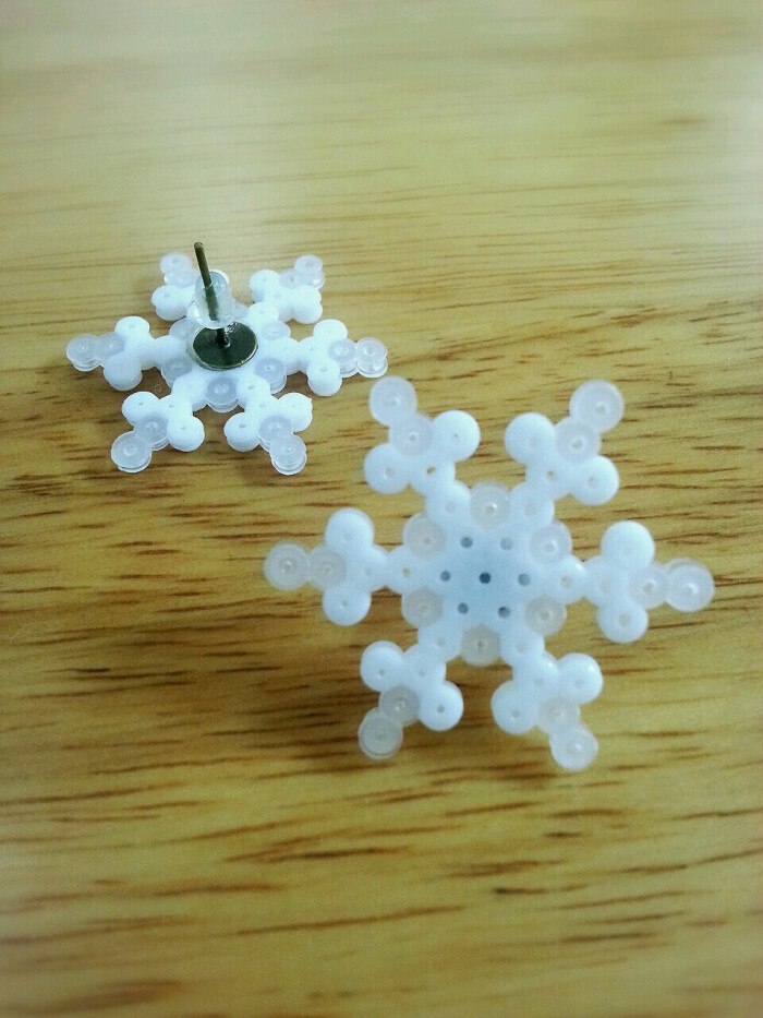 照着etsy上的雪花耳钉做的,其实挺大的 #拼豆 #手工