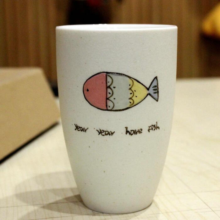 创意手工陶瓷杯子手绘水杯简约磨砂马克杯卡通鱼生日礼物定制刻字