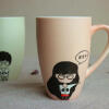 创意手绘水杯陶瓷马克杯磨砂大把手生日礼物定制情侣对杯可爱水杯