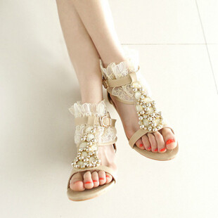 复古甜美蕾丝串珠凉鞋