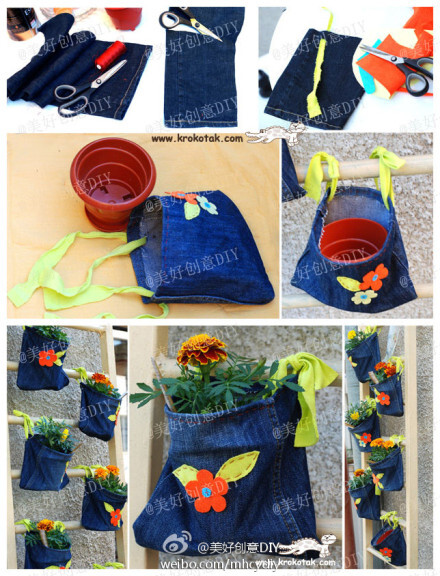 把旧的牛仔裤做成花盆,旧物利用~——更多有趣内容,请关注@美好创意DIY