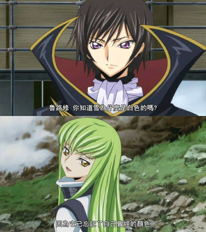 “鲁路修,你知道雪为什么是白色的吗?”“因为它忘记了自己曾经的颜色”——反叛的鲁鲁修