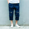 2015夏季日系复古牛仔裤潮男宽松直筒哈伦牛仔七分裤多口袋工装裤