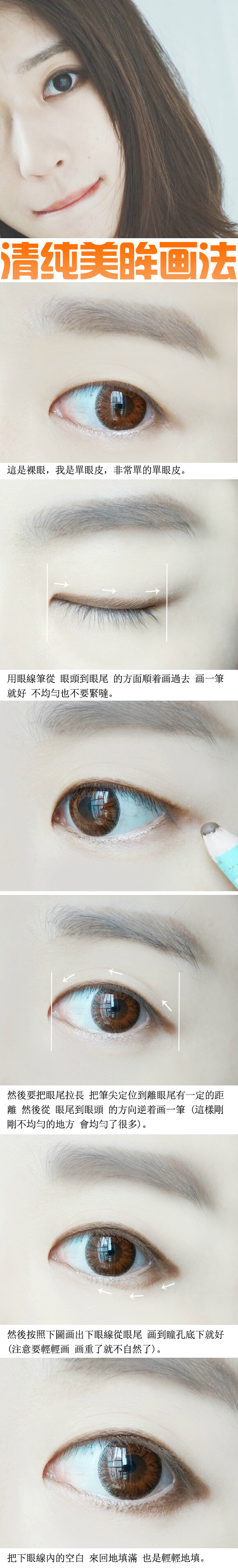 今天用一支眼线笔搞定了一个清纯无比的眼妆。教程很详细,亲们可别看花了眼。特别实用哈。还没完哦,专辑里有下一步怎么画U·ェ·U