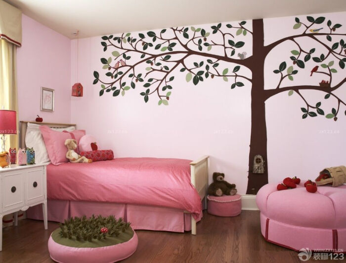 可爱粉色儿童房间卧室手绘背景墙图片