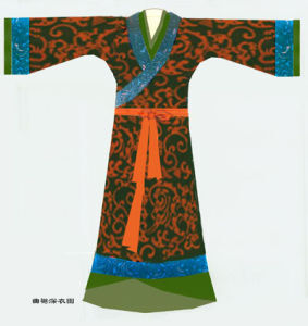 春秋战国之交,封建制度逐步取代了奴隶制度。“百家争鸣”的社会环境对服饰也有不同程度的影响。这时出现了一种上衣下裳相连的服装 ——深衣。