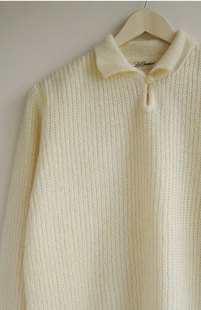 vintage复古学院风衬衫领白色羊毛衣