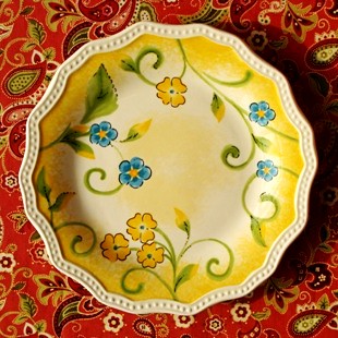 浓浓法式乡村风格的餐盘,而斑驳的彩绘则多了几分妖娆,极其华美稳重深沉的踏实感觉,又不缺少典雅气质,仿佛一杯香浓的焦糖拿铁,甘醇的咖啡中带着香醇的奶香味。同时花形线条优美、充满法式的优雅,亦显得温馨和浪漫,只是少了一份低调,却多了一份流连。