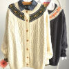 森林系立体蕾丝麻花针织 复古粗棒毛衣