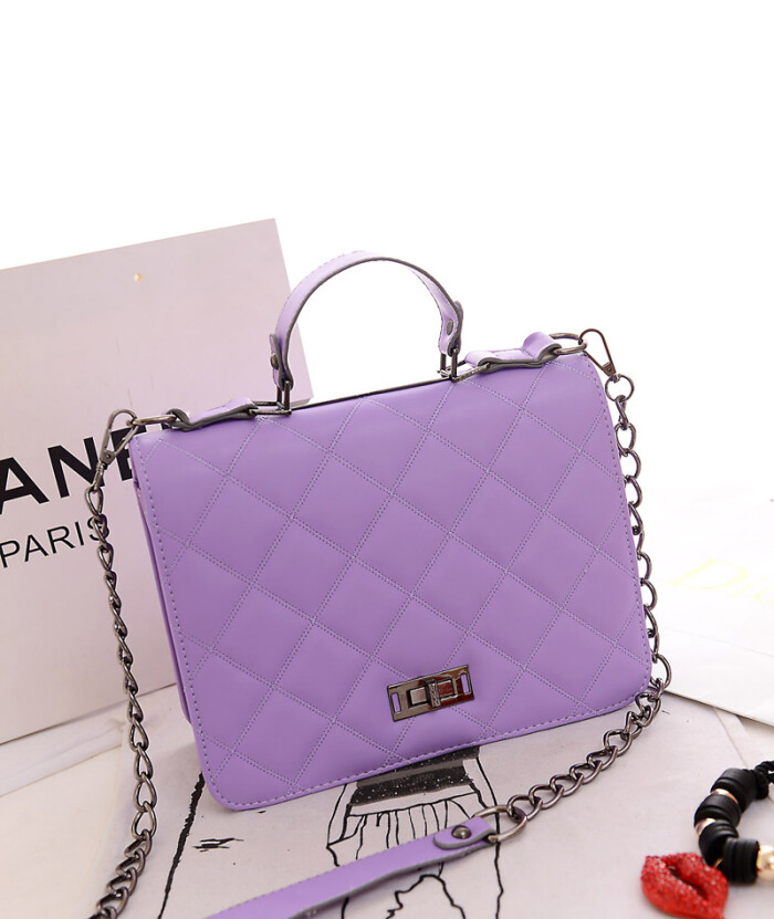 绣线转锁糖果色定型包新款手提单肩斜跨女包菱格链条女包
