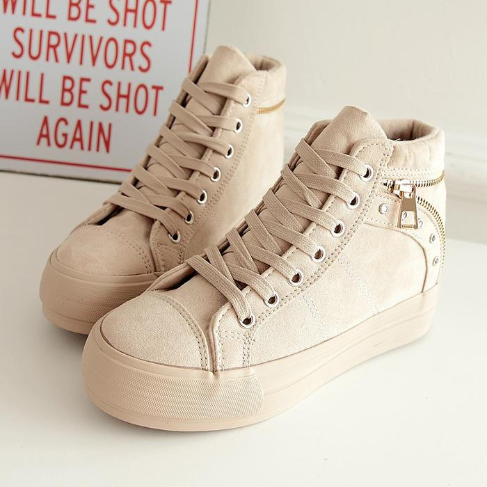2015春款女式帆布鞋高帮侧拉链板鞋韩版潮条纹平底学生鞋休闲女鞋