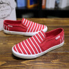 夏季浅口透气条纹帆布鞋平底一脚蹬套脚懒人鞋低帮休闲学生女鞋子