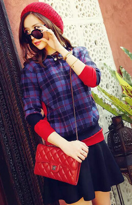 呛口小辣椒同款秋冬格子毛衣针织开衫纽扣+黑色半身裙两件套套装
