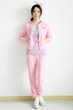 学院风甜美撞色秋装外套连帽拉链拼接开衫卫衣