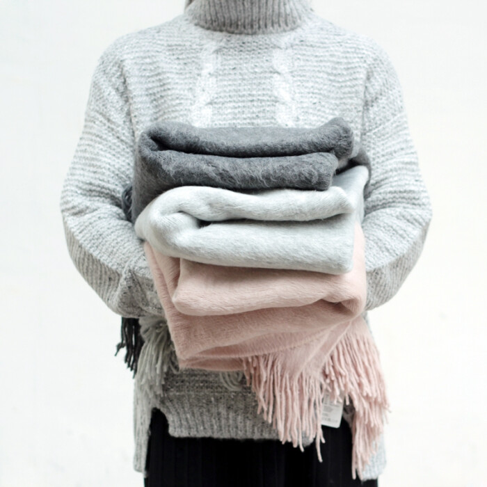 羊绒柔软超舒适简约流苏超大围巾披肩 深灰粉三色