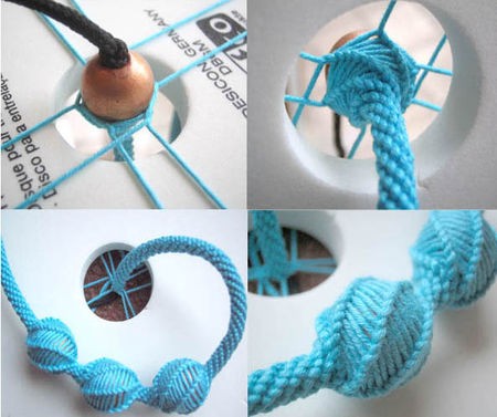 #自制编绳器#虽然都是编绳子的,却和编织板的效果不同,倒和wire里面的一种技巧效果一样,属于少不了的实用可爱小工具~还有一种大点的编线盘可以做围巾毯子什么的,也很有趣。富有韵律的环环相扣总让我着迷=w=