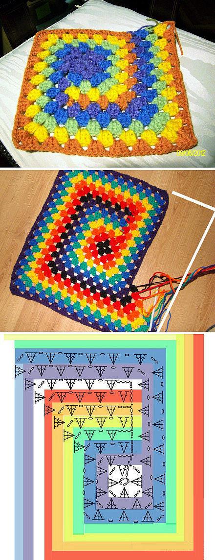 {钩针} 一条彩虹毯。好棒的教程。
