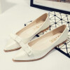 春季新品单鞋女蝴蝶结浅口甜美平底鞋女鞋米白色