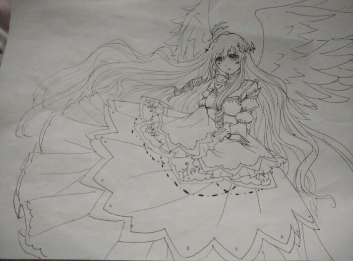 女子裙装正面全身像 古风 奇迹暖暖 手绘线稿 漫画绘画素材——by antique2013106