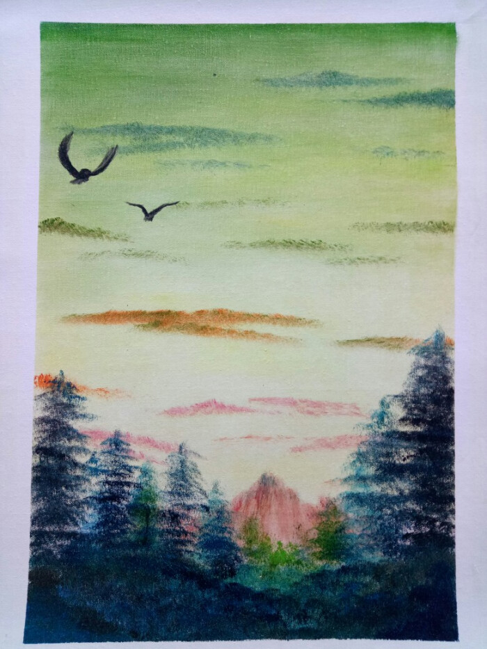 当你老了(刀笔油画挂画)✨,图片上的云是用刀抹出来的,可能照的不清晰。 当你老了,最希望和自己喜欢的人一起看夕阳,这种爱情细水长流但矢志不渝。希望大家的爱可以长长久久,陪伴到老。❤❤❤