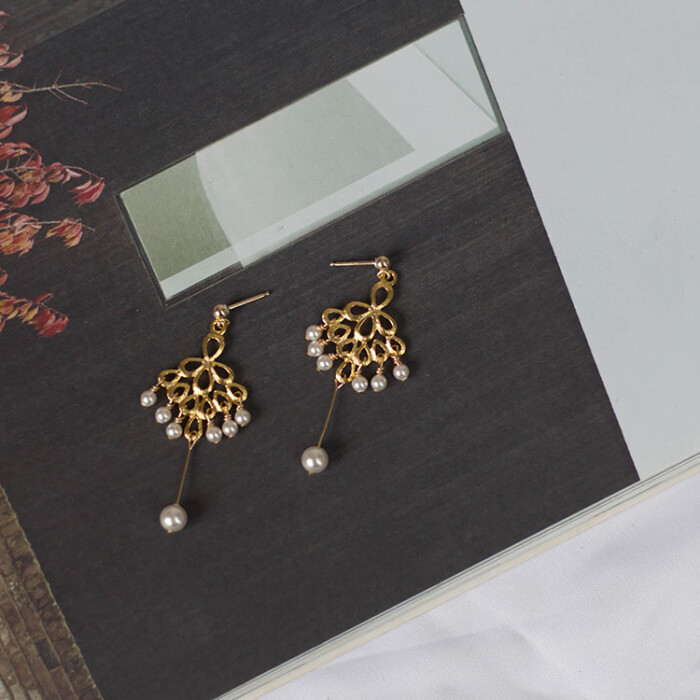 EASY CHIC手工定制中国风羽扇耳钉 珍珠气质优雅复古风耳环女耳饰