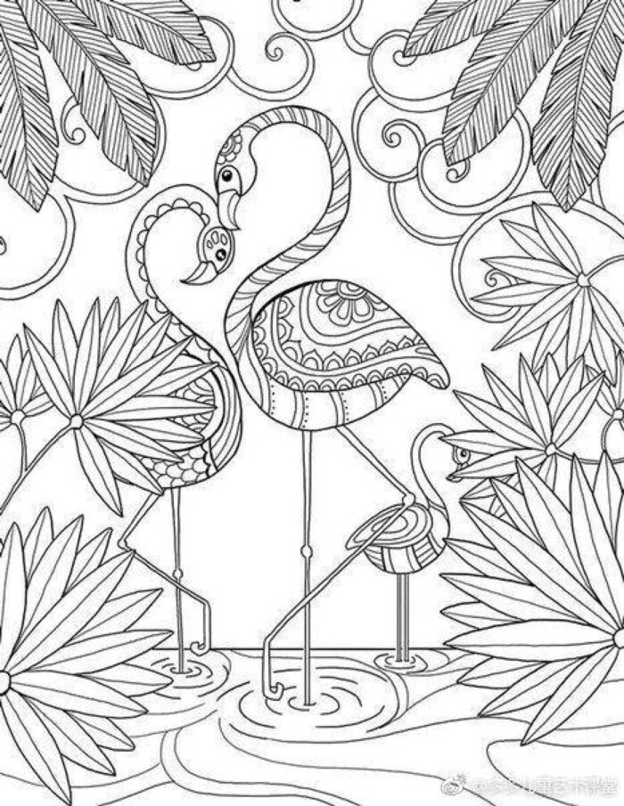 线描火烈鸟儿童画