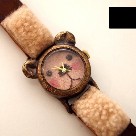 BEAR可爱耳朵小熊纽扣手绘毛线手工定制石英黄铜牛皮表
