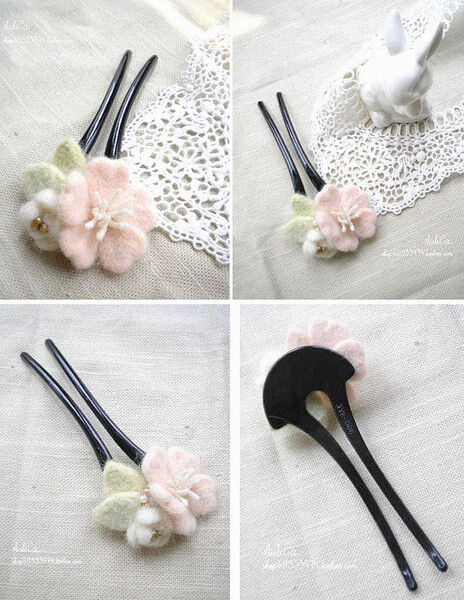 【童话森林 恬淡】AuliCa原创手作 森林系和风樱花羊毛毡 发插梳