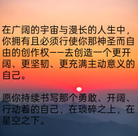 在广阔的宇宙与漫长的人生中,你拥有且必须行使你那神圣而自由的创作权——去创造一个更开阔、更坚韧、更充满主动意义的自己。 愿你持续书写那个勇敢、开阔、行动着的自己,在琐碎之上,在星空之下。